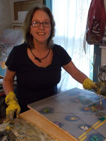 Miranda says her paintings lately have focused “more on surface quality and paint texture than on subject. I have been exploring impasto, stains and washes, varnishes and waxes. With subject, I am drawn to negative spaces and strive to give substance to those voids through the use of color, texture, and contrasting sheen, as I continue to be inspired by the snippets and corners of commonplace domestic vignettes.”