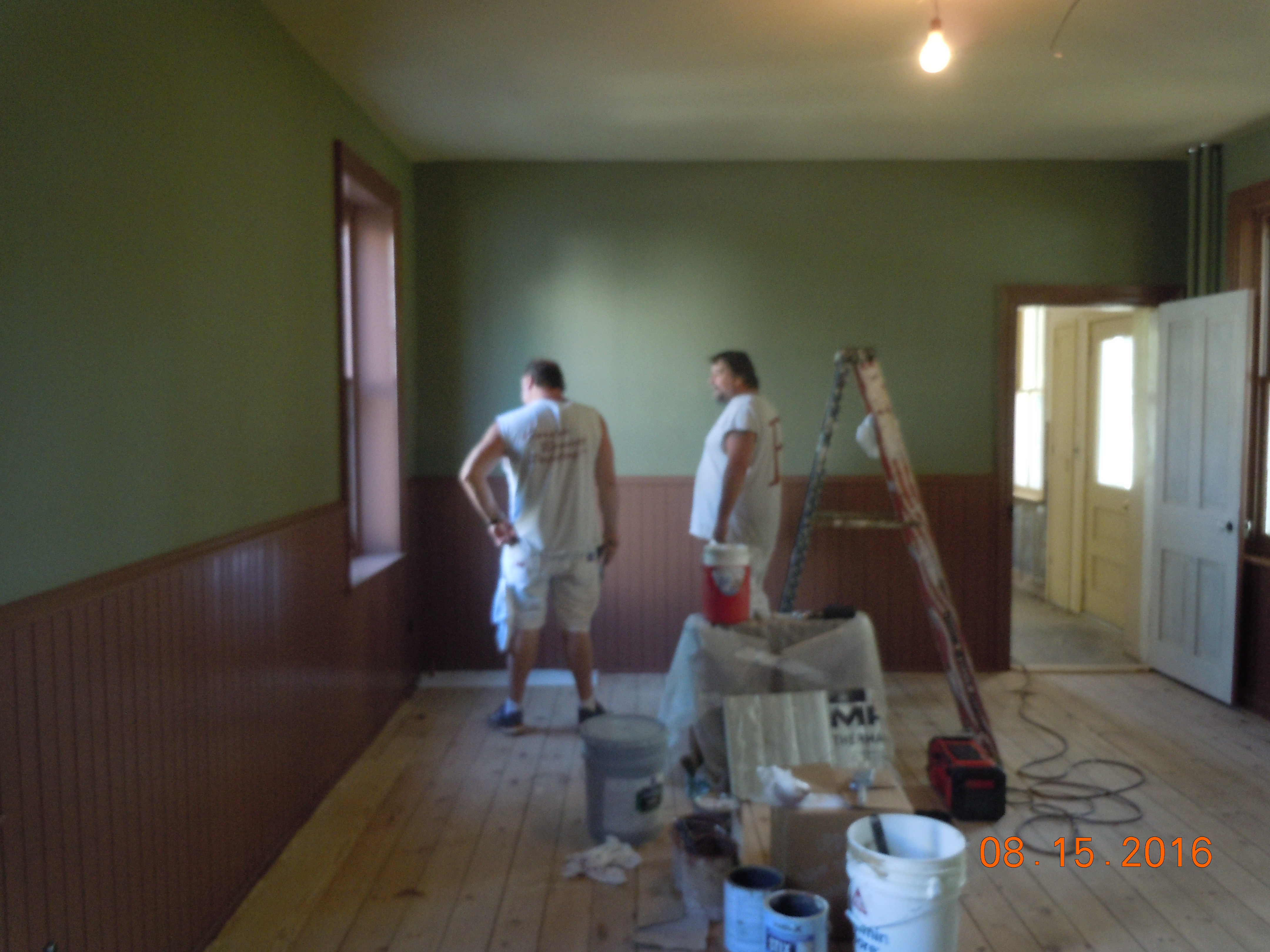 Dave Silcox recently toured The John Updike Childhood Home and took a few pictures of the restoration-in-progress. Below are shots of the dining room, upstairs hallway (with newly extended wall, as described by Updike), and Updike’s bedroom showing the original radiator placement on the right. The only change required by the restoration is the “bump out” on the left, needed to conceal mechanicals. The colors match what was in the house during Updike’s time, with R.J. Doerr and his subcontractors finding evidence of period wallpaper and paint matches behind molding.