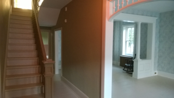 All that remains of exterior work contracted for “Stage 1” and “Stage 2” restorations is the completion of a side porch staircase and side lath work. After that, when more money can be raised, the grape arbor and brick patio will be recreated on the side of the house, and additional parking spaces will be created behind the house, with lines painted.