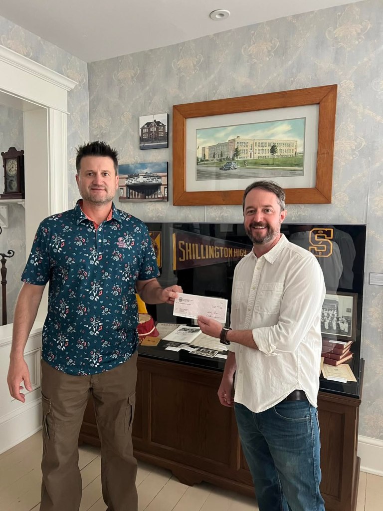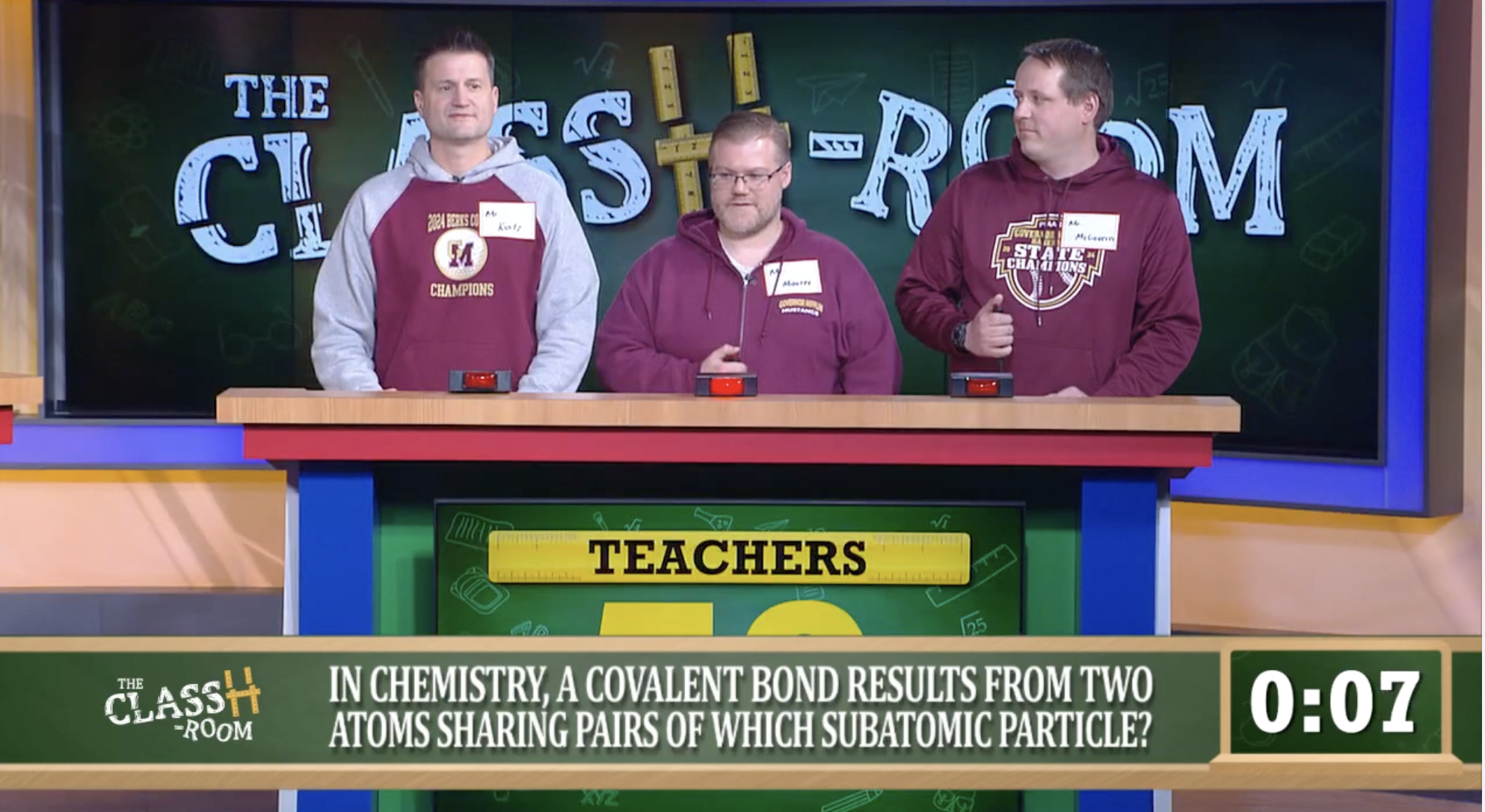 Governor Mifflin High School teachers and students appeared on Season 5, Episode 24 of The ClassH-Room game show, which airs on Fox29-Philadelphia. Students Rachel, Gianna, and Jacob faced off against their favorite teachers—Mr. Kurtz, Mr. Maurer, and Mr. McGovern—in a test of knowledge, with the teachers coming out on top. Thanks to the winners for donating their $500 prize to The John Updike Childhood Home. After Mr. Kurtz and his local history class toured the house on May 19, 2025, a check was accepted on behalf of the John Updike Society by Charlie Lester. Updike graduated from the high school in 1950 when it was called Shillington High School, which he could see (and visitors can still see) from his bedroom window. Thanks GMHS teachers! Here’s a link to the full game-show episode.