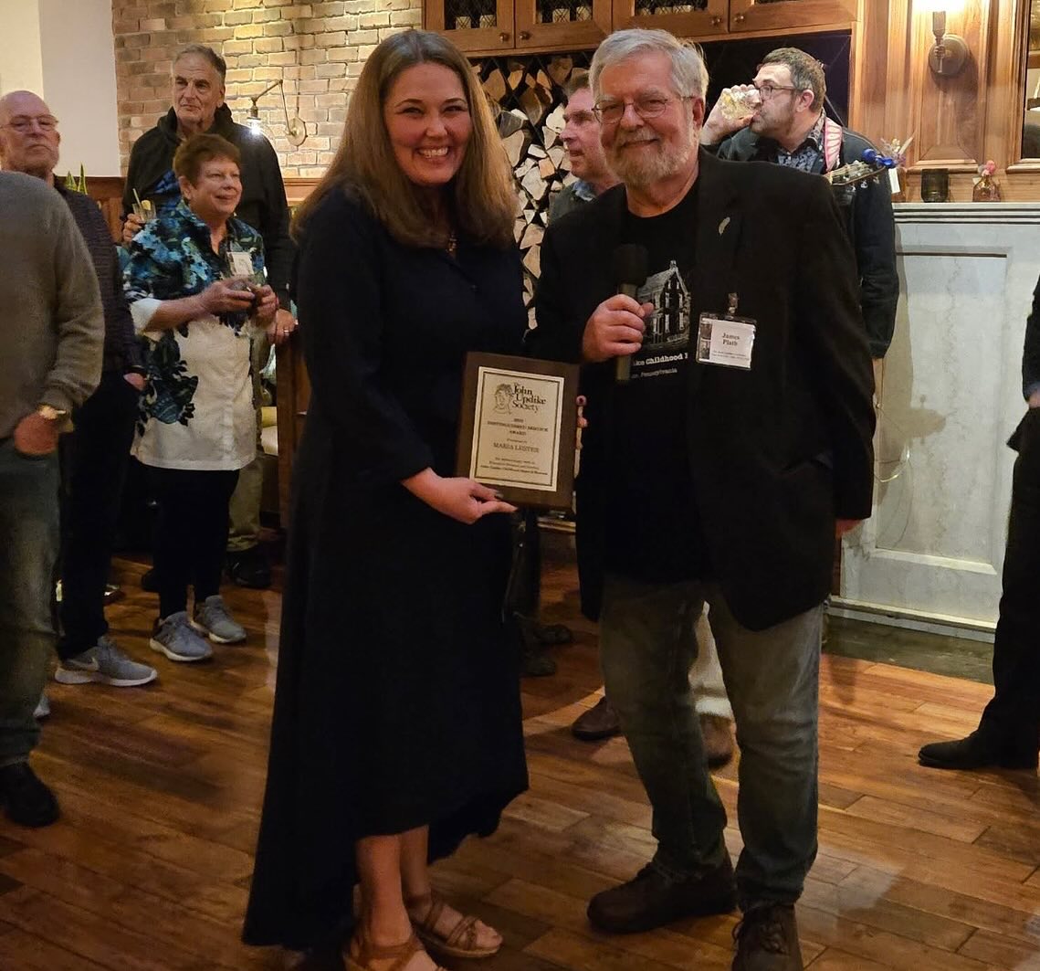 Lester, who co-directed the society’s 2014 conference in Reading, Pa., received the award at the Society Cafe during an Updike Society-sponsored reception for The Roth-Updike Conference in Greenwich Village, NYC, on Sunday, October 19, 2025.